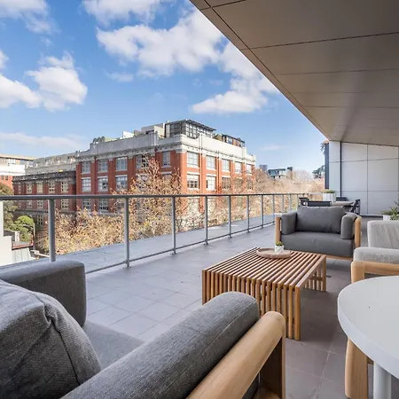 ベッドルーム1室のStaycentral - The Marque At Collingwood メルボルンアパートはカールトン庭園から徒歩で25分くらいに位置し、街路の景色を一望できます。 このアパートの特徴の一つは、都市の眺めを楽しめるテラスです。